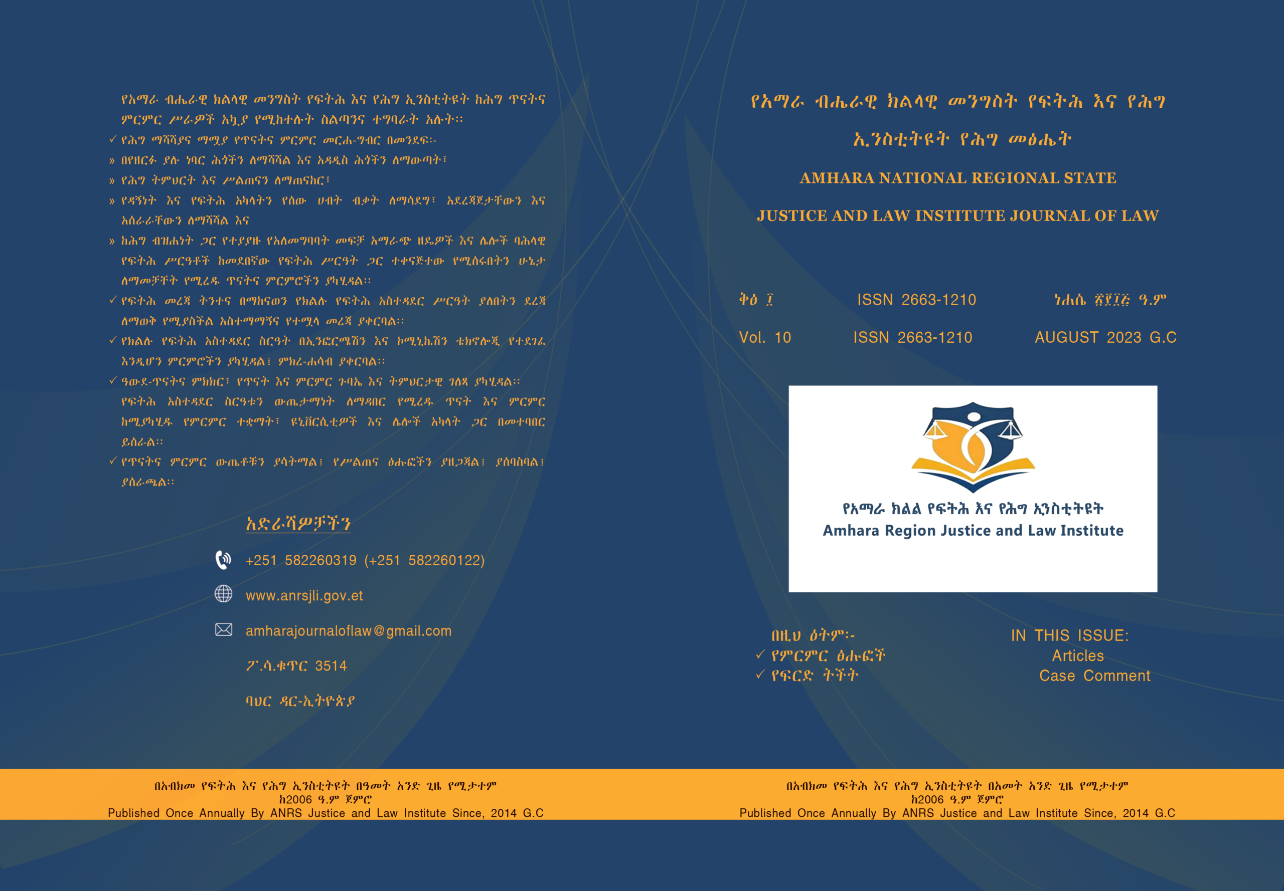 Volume 1 Volume 3 የኢትዮጵያ_የይርጋ_ህጎች_መሰረታዊ_ሀሳቦችተደራራቢ_ወንጀሎች_ጽንሰ_ሀሳብ_ሕጉና_አፈጻጸሙ_በአማራ_ክልልበኢ_ፌ_ድ_ሪ_የወንጀል_ሕግ_አንቀጽ_543_ንዑስ_ቁጥሮች_መካከል_ያለው_የልዩነት_ወሰን_እና_በስራየተጨማሪ_እሴት_ታክስ_ደረሰኝ_ካለመቁረጥ_ጋር_ተያይዞ_ስለሚኖር_የወንጀል_ተጠያቂነት_አድማስበመንግሥት_የግንባታ_ውል_አፈፃፀምና_አተረጓጎም_ሂደት_የሚያጋጥሙ_ችግሮችን_ለመፍታት_አማራጭ_የሙግትመልካም_አስተዳደርን_በፍትሕ_አስተዳደር_ዘርፉ_ውስጥ_በማስፈን_ረገድ_የጠበቆች_ሚናአንድ_የክስ_ምክንያትን_ያለመነጣጠል_ጽንሰ_ሐሳብ_እና_አተገባበሩ፡_በአብክመ_ጠቅላይ_ፍርድ_ቤት_ሠበርየመዳረግ_መብት_በኢትዮጵያ_የኢንሹራንስ_ህግ_አጭር_ዳሰሳ Volume 4 Volume 5 Volume 6 Cover PagesInternal Pagesበምርመራ_ወቅት_ለፖሊስ_የተሰጠ_የእምት_ቃል_በማስረጃነት_ስለሚወሰድበት_አግባብበአማራ_ክልል_የገጠር_መሬት_ይዞታና_የመጠቀም_መብት_ላይ_የሚነሱ_ክርክሮችን_የሚወስኑ_አካላት_ሁሉንየሕግ_አስከባሪ_አካላት_ኃይል_አጠቃቀም_ስልጣን_እና_የተጠያቂነት_ስርዓት፡_ተከሳሽ_በሌለበት_የወንጀል_ክርክር_ሂደት_በዓለምአቀፍ_እና_በኢትዮጵያ_የቋሚ_አሠሪና_ሠራተኛ_ጉዳይ_ወሳኝ_ቦርድ_ስልጣንና_አተገባበር_ዳሰሳትርጓሜያዊ_የማግለል_ጽንሰ_ሃሳብ_በኢትዮጵያ_የአሠሪ_እና_ሠራተኛ_ሕግጥፋተኝነትን_የማስረዳት_ደረጃ_በኢትዮጵያ_የወንጀል_ፍትህ_ስርዓት፡_ሀሠተኛ_ምስክርነት_በኢትዮጵያ_የወንጀል_ሕግየፍትሐብሄር_እና_የወንጀል_ክርክር_የነገር_ጭብጥ_አመሰራረትና_የማስረጃ_አግባብነት_ግንኙነት፤_የአማራየመንግስት_የግንባታ_ውሎች_እና_አጠቃላይ_የዉል_ሁኔታዎች_ከግንባታ_አፈጻጸም_ጋር_ያላቸዉ_ግንኙነት Volume 7 Volume 8 Volume 9 volume 10Cover pages